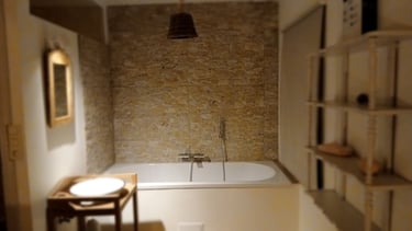 Découvrez notre suite avec baignoire double, un havre chic, de détente où chaque détail est pensé pour votre confort. Profitez d'un espace élégant et intimiste, idéal pour une escapade romantique ou un moment de relaxation ultime, dans une ambiance raffinée et apaisante.