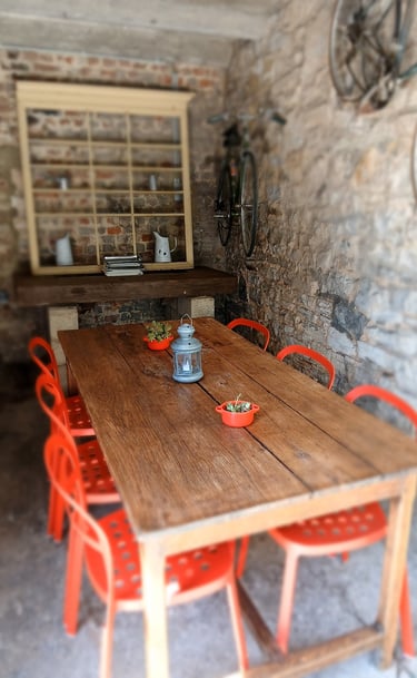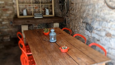 Notre terrasse couverte est idéale pour des moments privilégiés en famille ou entre amis. Profitez d'un repas en plein air, d'une pause lecture, ou du chant des oiseaux. Aménagée avec goût, elle promet des instants magiques du matin au soir, en toute convivialité.