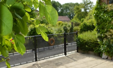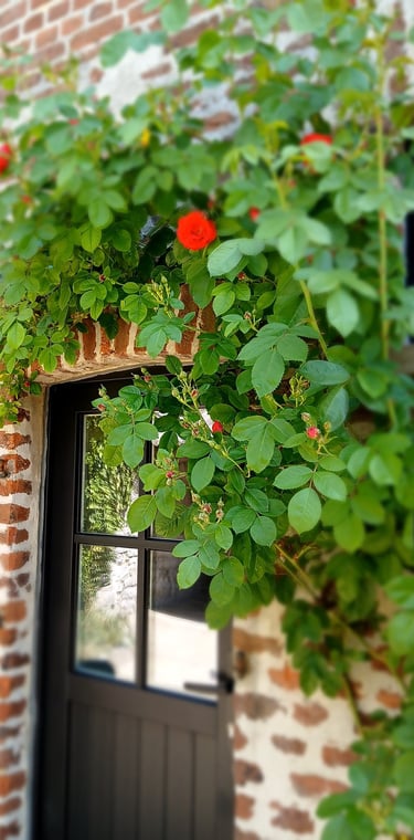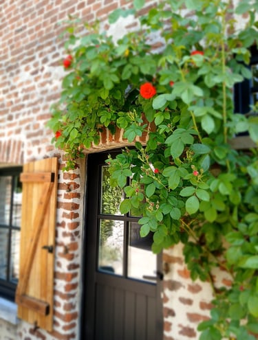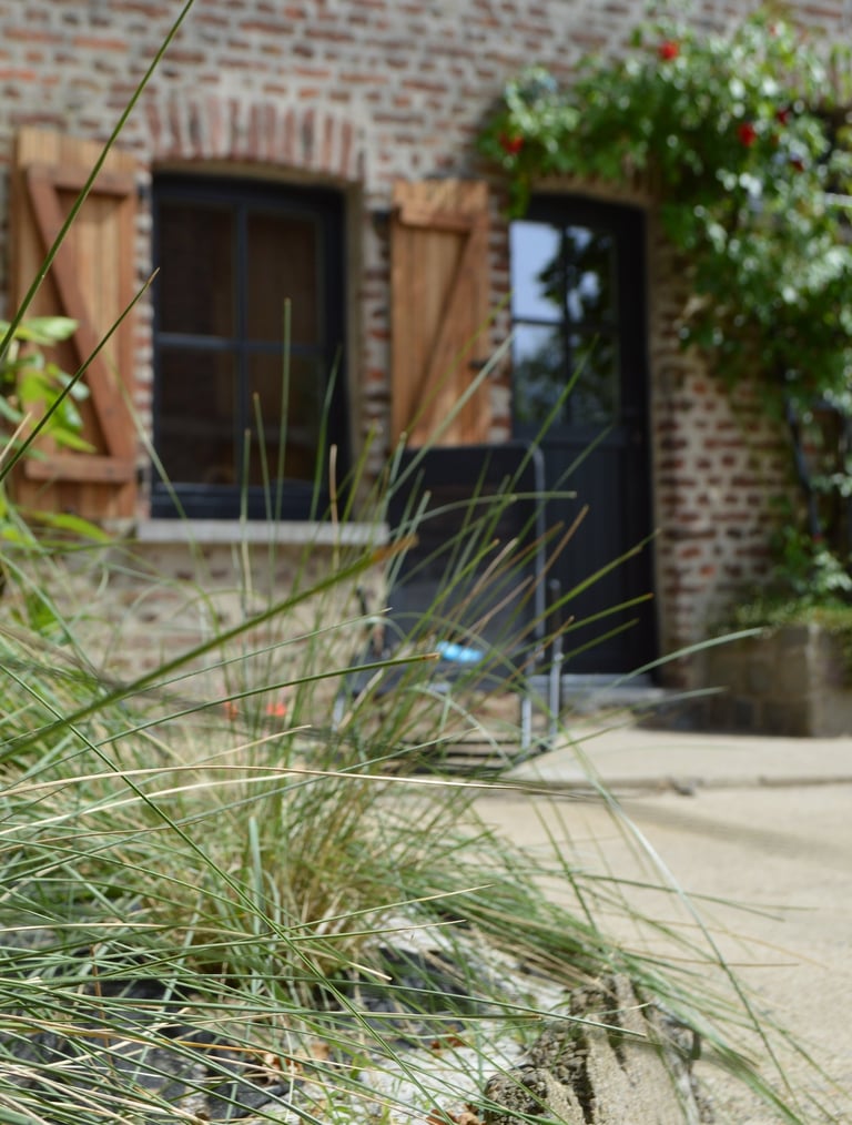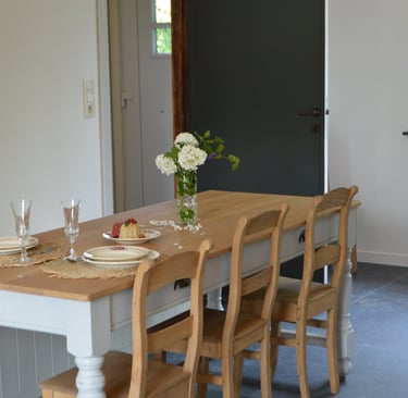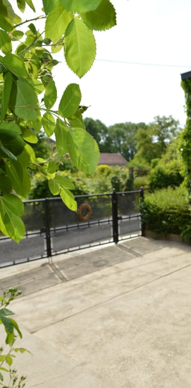 Profitez pleinement de notre cour fleurie à La Maison d'Alfred, sécurisée par une barrière pour les enfants. Bénéficiez d'un accès pratique à la cuisine par une porte fenêtre ou par le couloir, offrant un cadre convivial pour les repas en plein air et les moments de détente en famille.