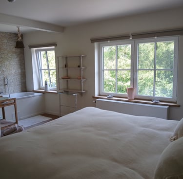 Explorez notre suite, où une baignoire double invite à la détente dans un cadre au charme ancien. Conçu avec un esprit de brocante, cet espace offre confort et style authentique pour une expérience unique et relaxante.